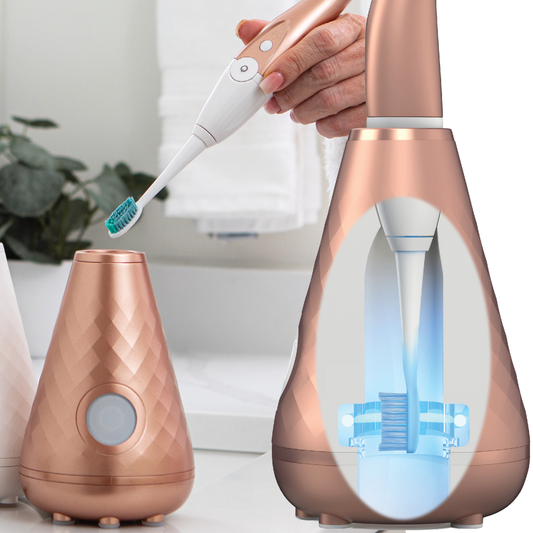 Let's face it - our bathrooms are a breeding ground for nasty germs… But worry no more! The Smile Vera's patented UV-C cleansing base station provides a dentist-grade level of sanitization that kills 99.9% of harmful bacteria – including human coronavirus. It's like having a personal bodyguard for your toothbrush!