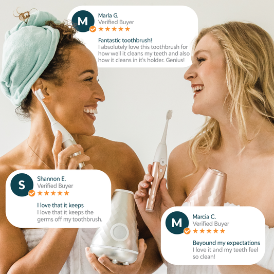 The The Smile Vera Sonic Toothbrush is revolutionizing oral care for Americans with its powerful cleaning action, self-sanitizing technology, and sleek design… It's no wonder dentists and users alike are raving about this game-changing device!